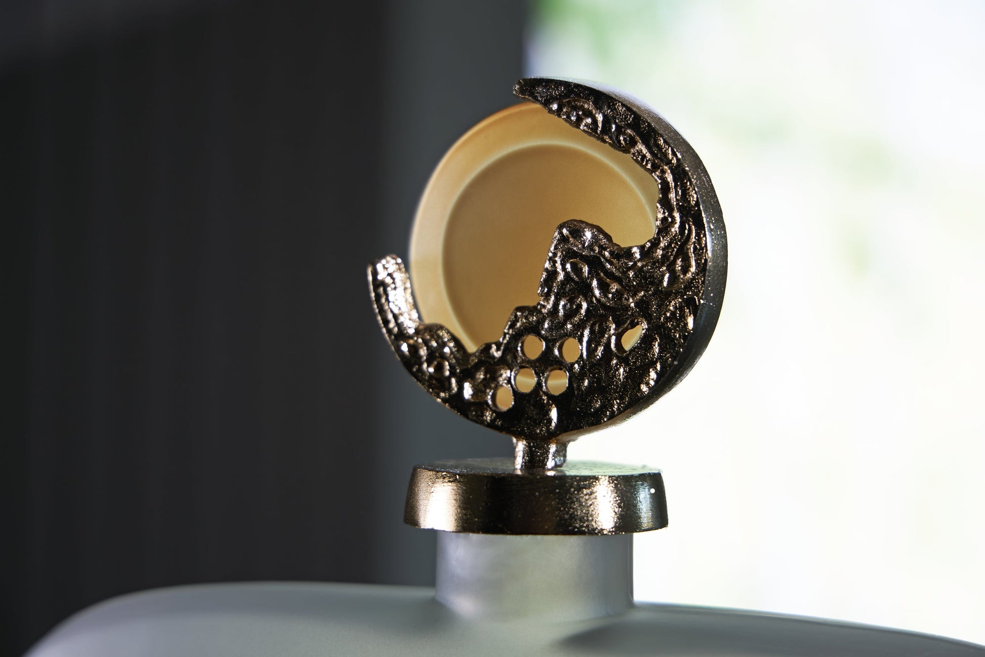 | Détails | Fabriqué en verre dépoli, finition taupe, dessus en aluminium moulé avec finition dorée, en raison du processus de finition de ce produit, certaines variations peuvent se produire | |