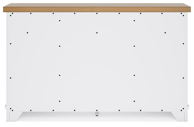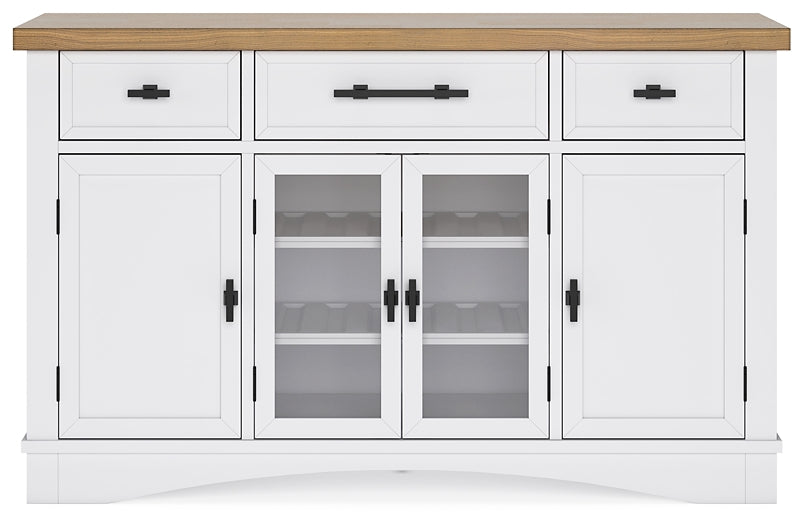 Un style décontracté et raffiné. La finition bicolore de ce buffet, blanc classique et placage chêne massif, confère une ambiance décontractée à ce design raffiné. Ses armoires et tiroirs spacieux offrent un espace de rangement discret, tandis que ses poignées de bar noires évoquent une ambiance campagnarde moderne. Ce meuble, soigneusement agencé, est une véritable preuve de bon goût.