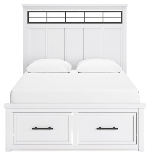 Ce lit queen-size à panneaux de rangement allie style décontracté et fonctionnalité. Un détail métallique incrusté sur la tête de lit apporte une touche unique au design campagnard moderne. Sa silhouette robuste, sa finition blanche classique et ses poignées noires créent une ambiance douillette et confortable dans votre havre de paix. Les tiroirs de rangement sont suffisamment spacieux pour accueillir tous vos essentiels.