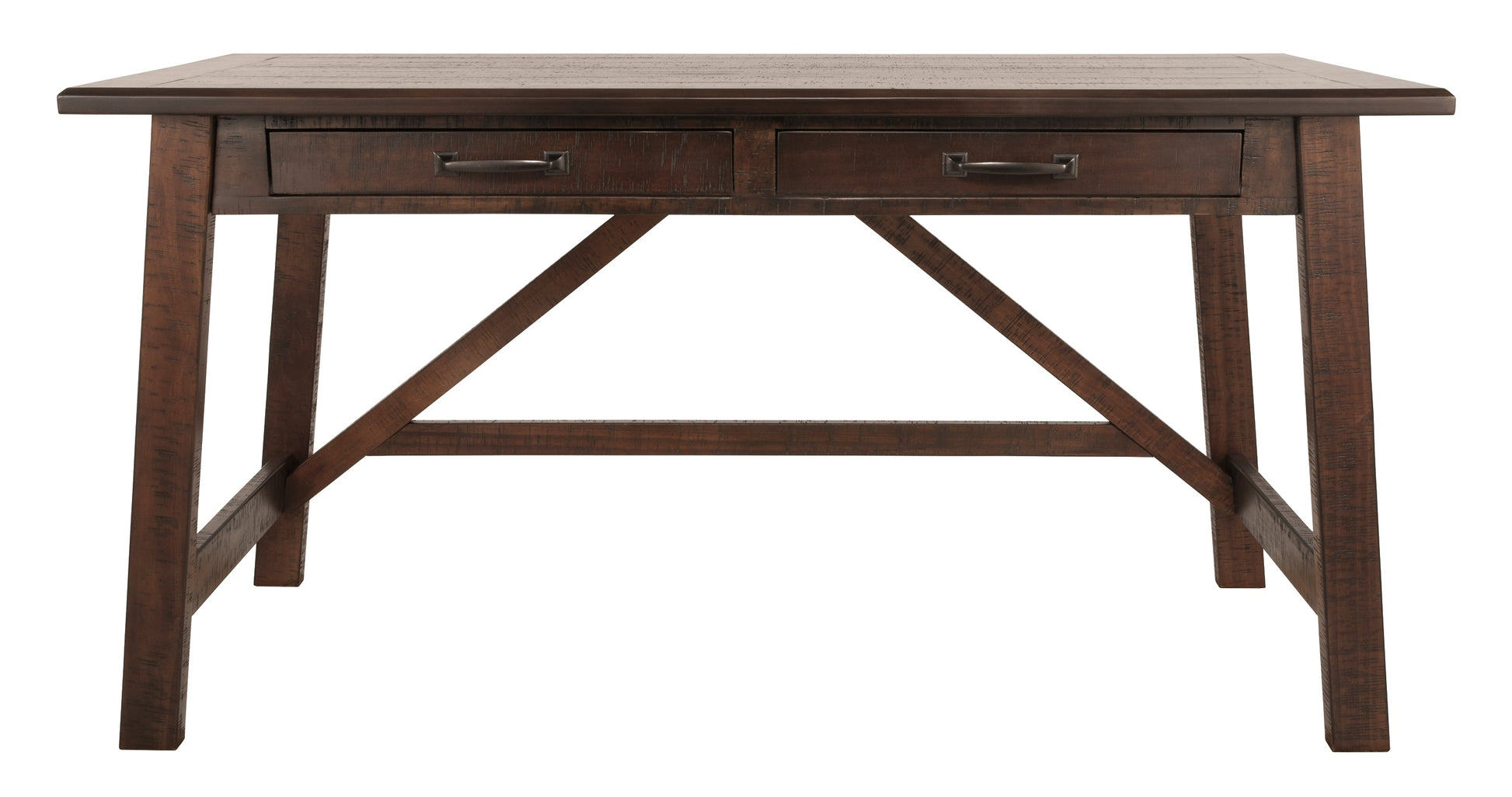Envie d'un look décontracté et décontracté avec une touche industrielle rustique ? Ce bureau à pieds inclinés offre un style moderne. Deux tiroirs coulissants et à queue d'aronde témoignent d'une qualité indémodable. Les marques de scie apportent une touche d'usure riche. Les poignées sculptées et vieillies apportent la touche finale.