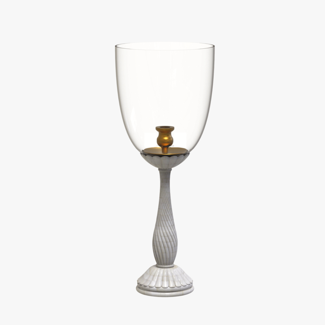 Photophore en verre et os sculpté : 23 cm (hauteur) x 8 cm (largeur) x 8 cm (profondeur)