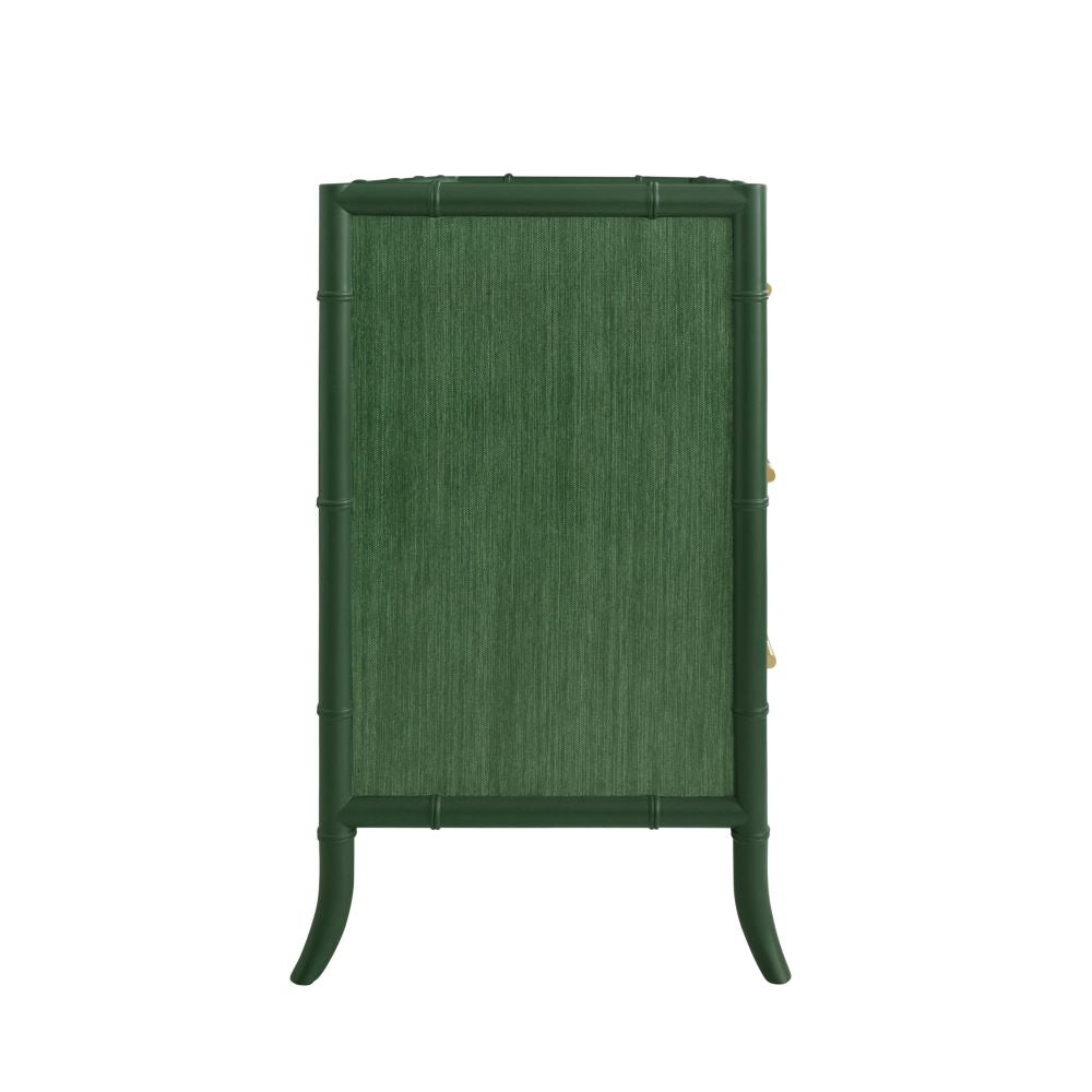 Avec sa forme classique et ses matériaux variés, la commode Blakewell Forest apporte style et élégance à toute pièce. Ses quatre tiroirs spacieux, ornés de poignées en laiton et acrylique, rehaussent le style intemporel de cette commode en fibre végétale teintée et laquée vert foncé mat. Des pieds galbés et des détails en bambou complètent son allure raffinée.