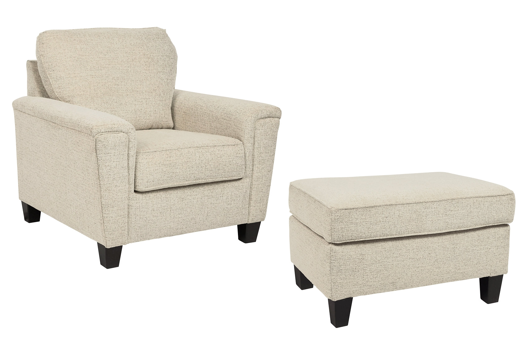 Envie de détendre l'atmosphère ? Cet ensemble fauteuil et ottoman, compact et économique, est une véritable bouffée d'air frais. Revêtu d'un revêtement en chenille crème à la texture moelleuse, cet ensemble contemporain minimaliste avec ottoman séduit par ses côtés inclinés et ses accoudoirs profilés, enveloppés d'une couche de douceur pour un petit plus. Un look sensationnel.