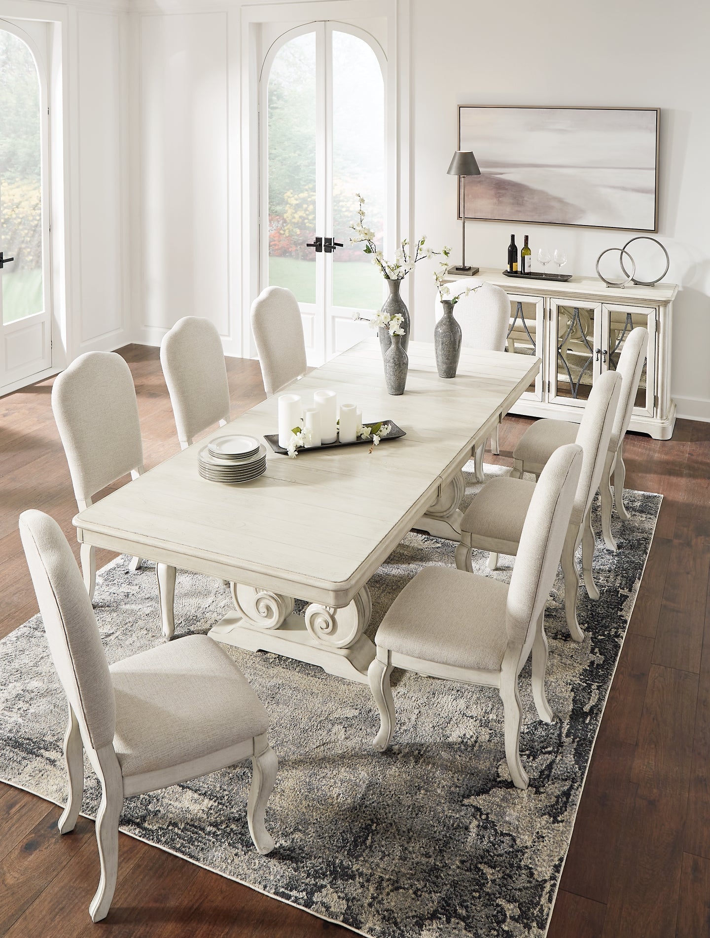 Offrez-vous une expérience culinaire raffinée avec cet ensemble. Sa finition blanche patinée est synonyme d'élégance simple. Ses silhouettes harmonieuses rehaussent le caractère romantique de l'ensemble, s'adaptant encore davantage à votre goût du luxe.