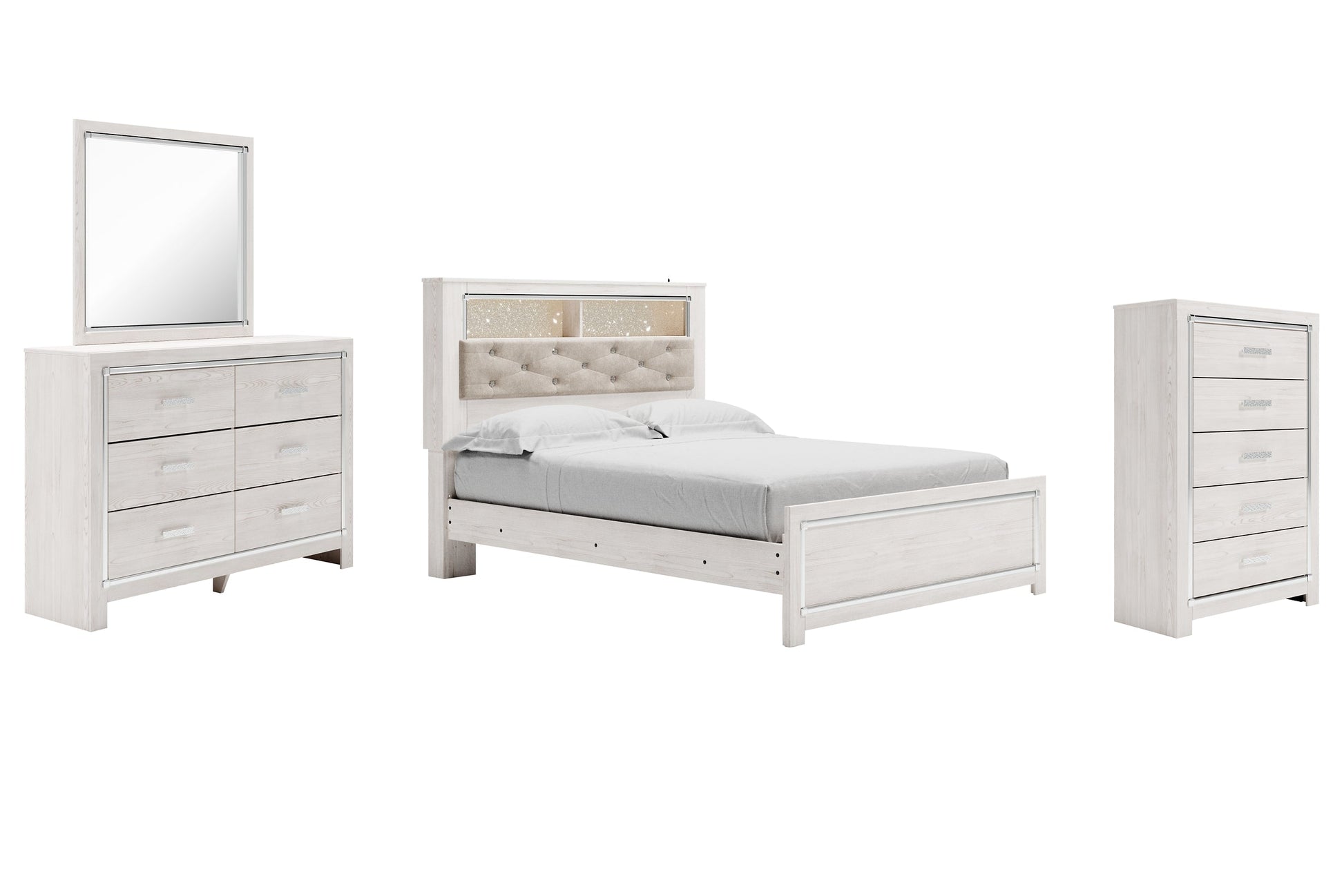 Lit bibliothèque à panneaux Altyra Queen avec commode et coffre à miroir