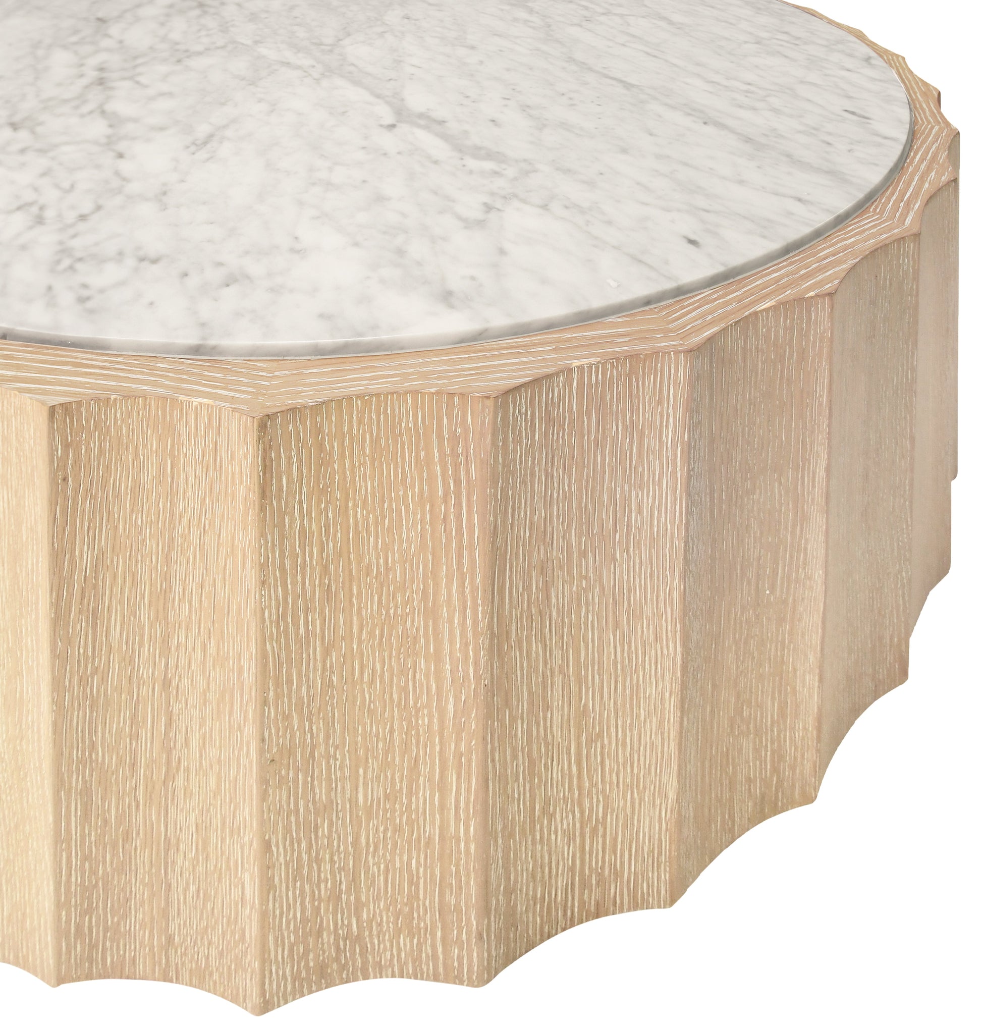 Notre table basse ronde Remy dégage une élégance discrète grâce à son piètement cannelé en chêne cérusé et son plateau en marbre de Carrare classique. Son design moderne repose sur un piètement en bois nervuré qui offre une base solide et esthétique au plateau en marbre. La table basse Remy est un élément intemporel qui s'intègre harmonieusement à tout intérieur raffiné, qu'il s'agisse d'une maison de plage ou d'un appartement urbain élégant.