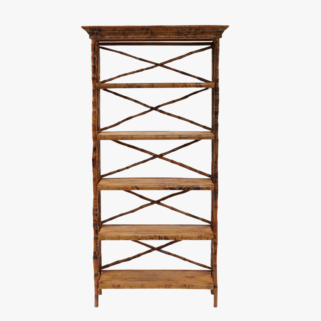 Notre bibliothèque anglaise classique en bambou imitation écaille de tortue apportera rangement et style intemporel à votre intérieur. Ce meuble polyvalent en rotin est idéal pour mettre en valeur vos objets décoratifs ou votre collection de livres. Il est doté de cinq étagères flottantes. Son style bambou imitation écaille de tortue revisite avec modernité le design traditionnel du mobilier anglais : un classique instantané !